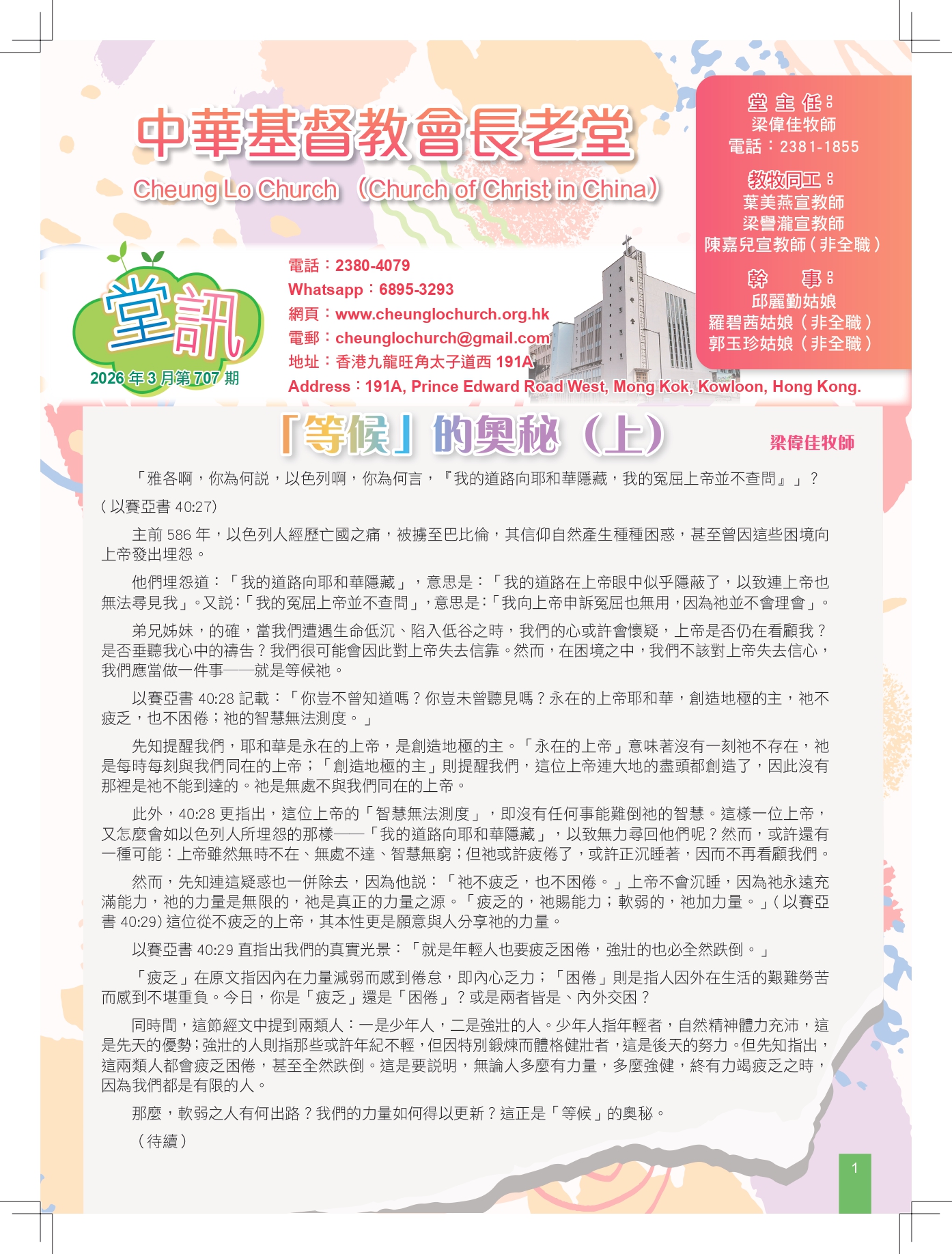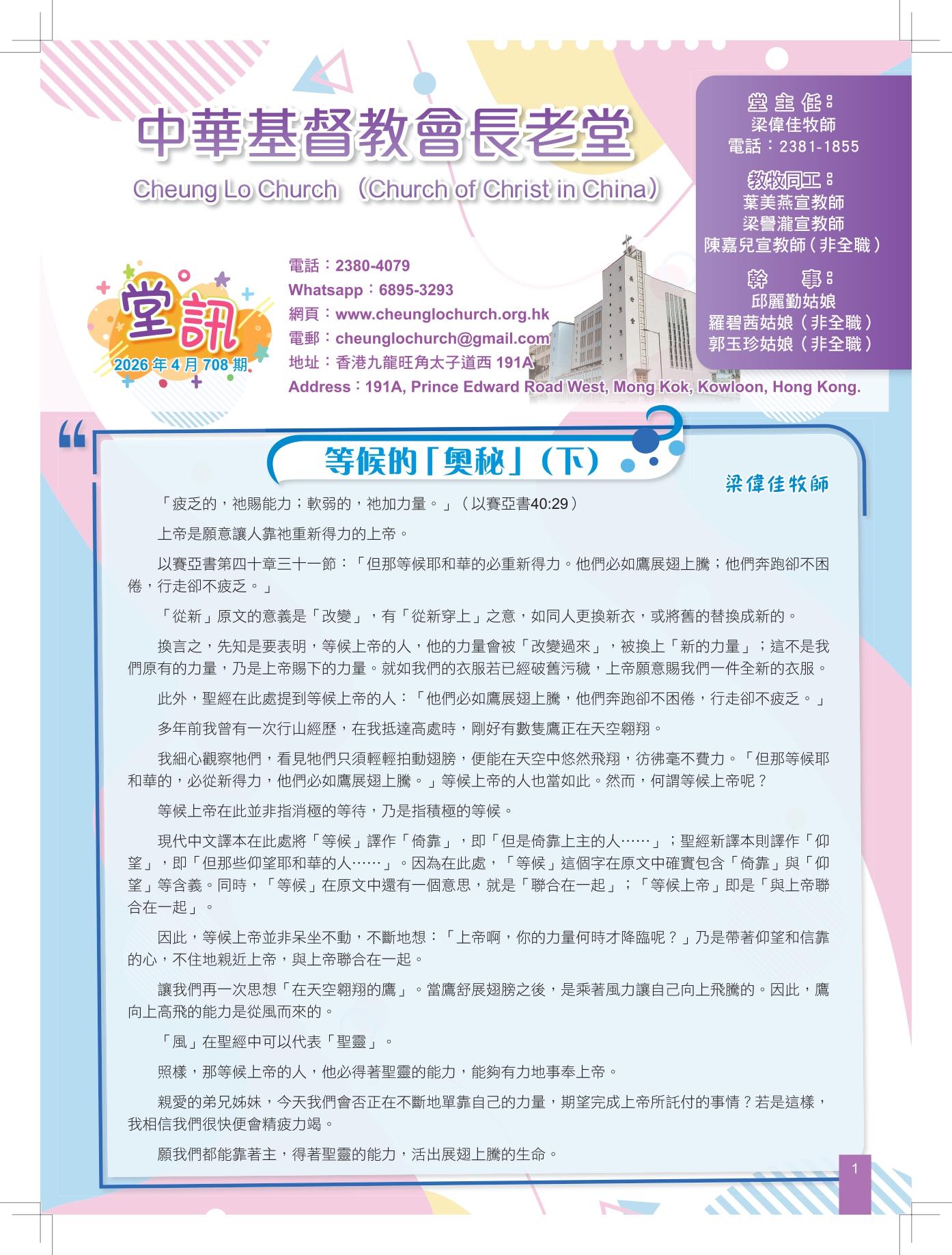 本堂同時不定期舉辦信仰基礎課程、主日研經班及教友探訪等事工,歡迎來電查詢。