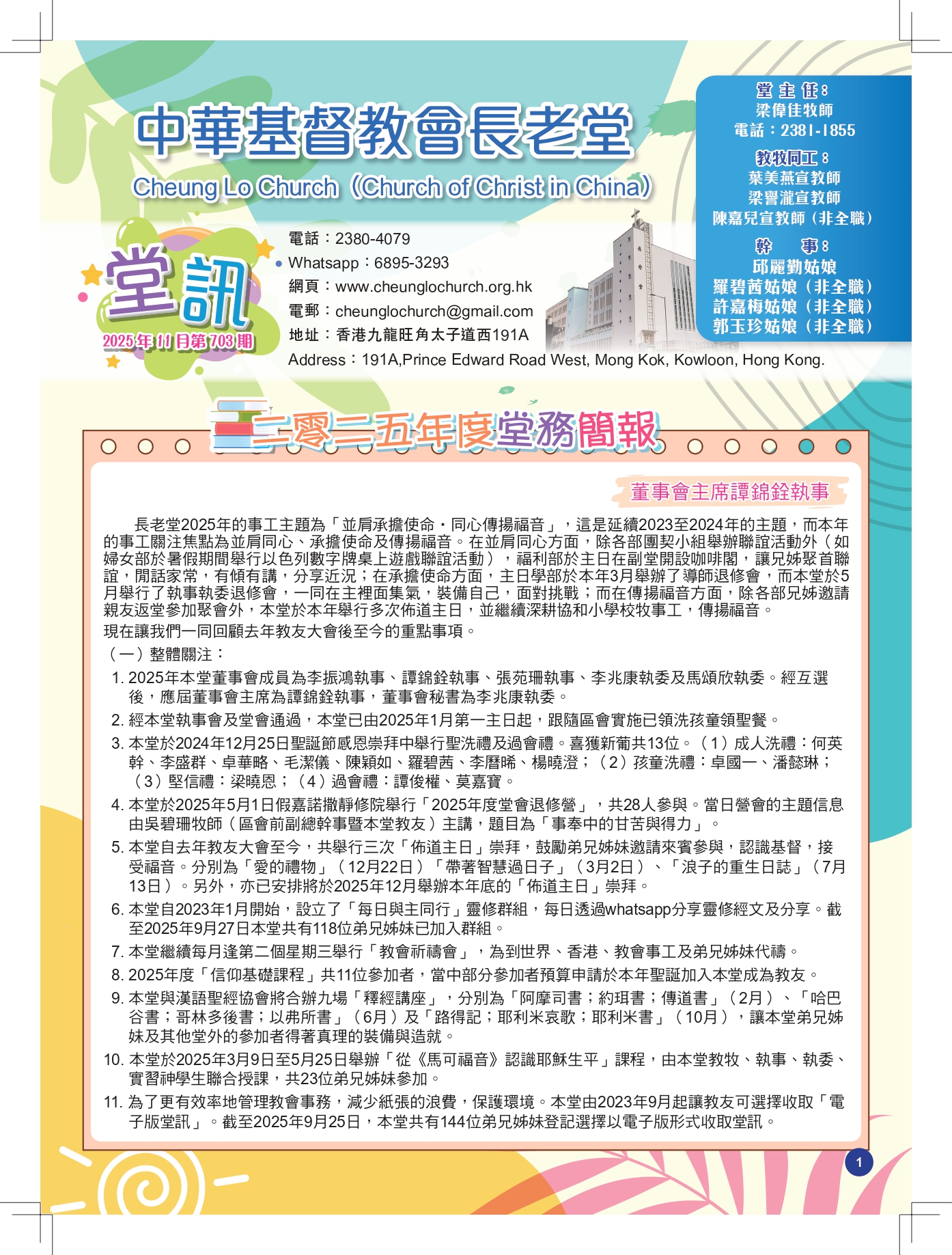 本堂同時不定期舉辦信仰基礎課程、主日研經班及教友探訪等事工,歡迎來電查詢。
