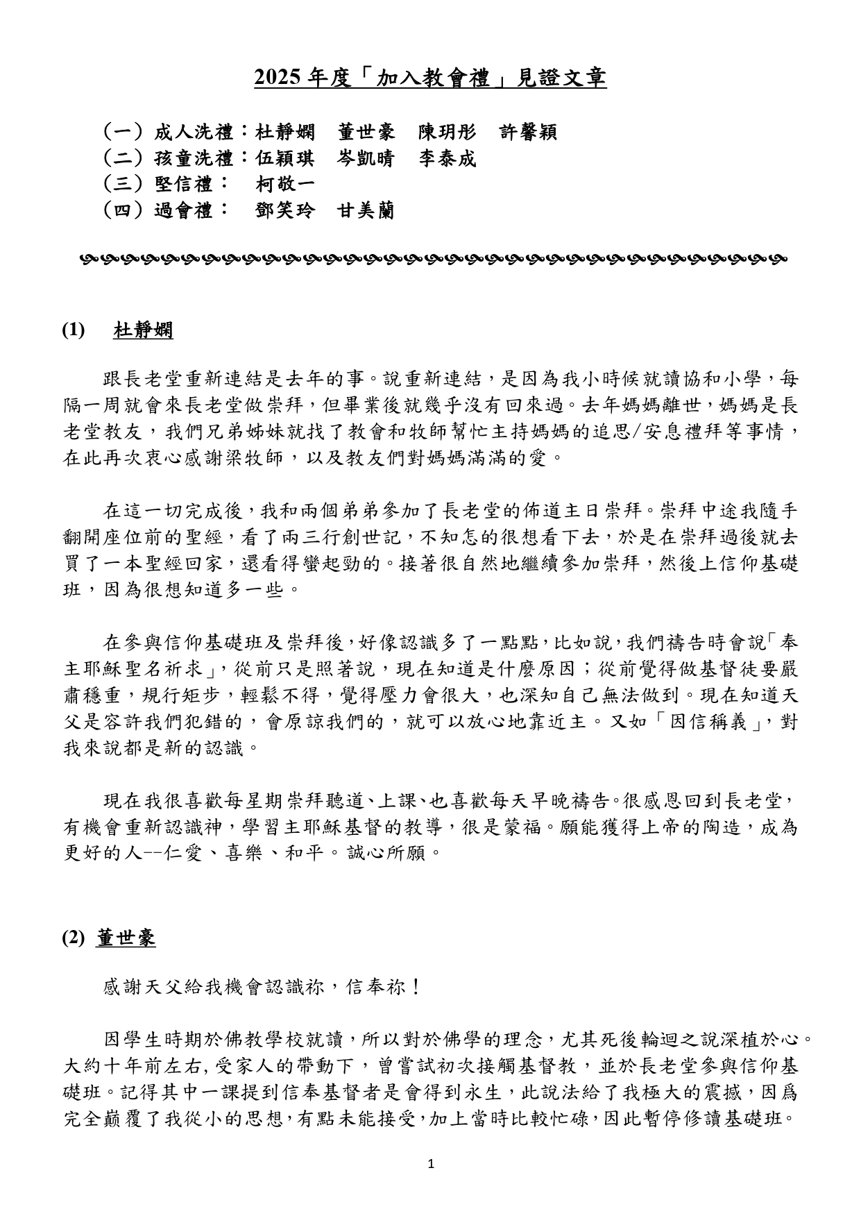 2025年度加入教會禮見證文章