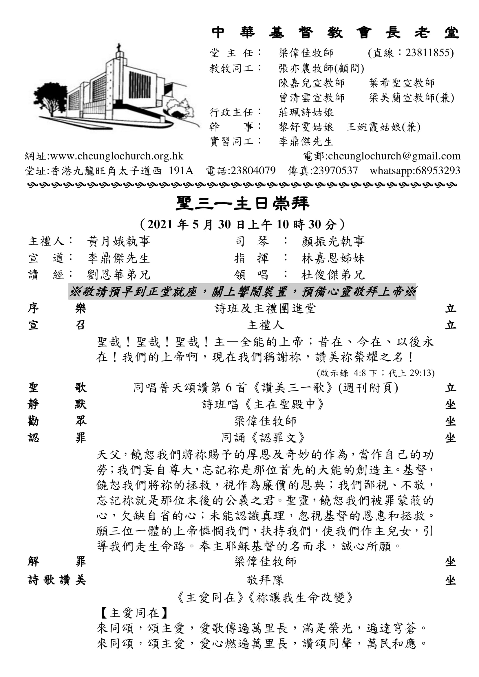 2021年05月30日聖三一 主日崇拜 (上午 10時 30分)