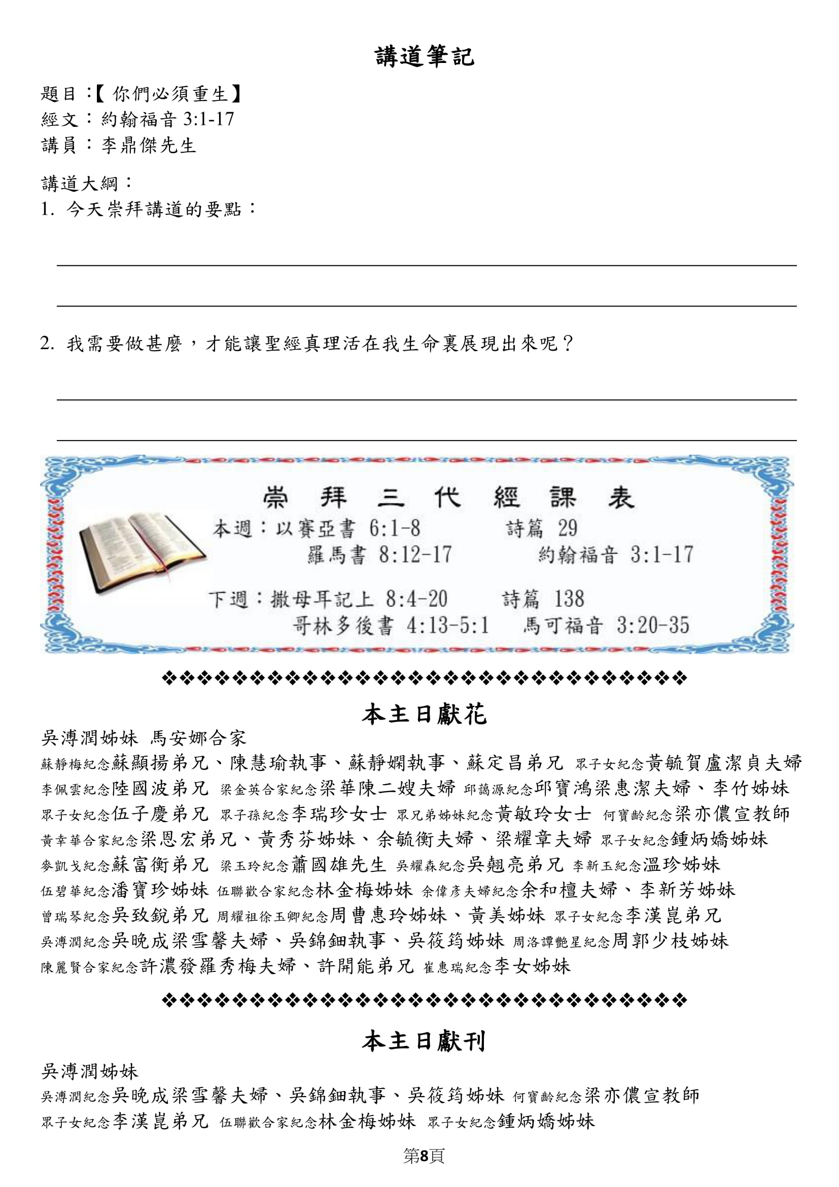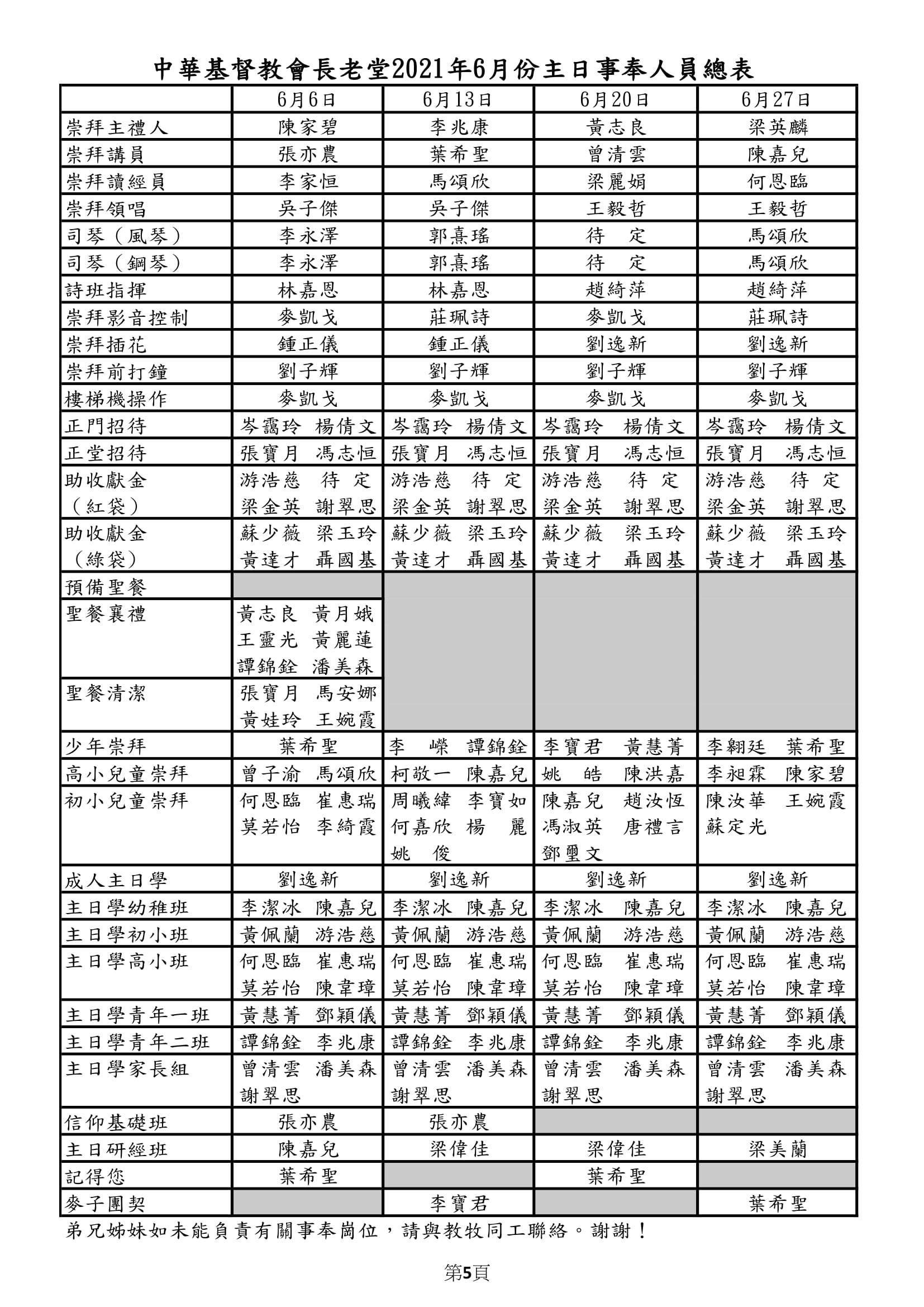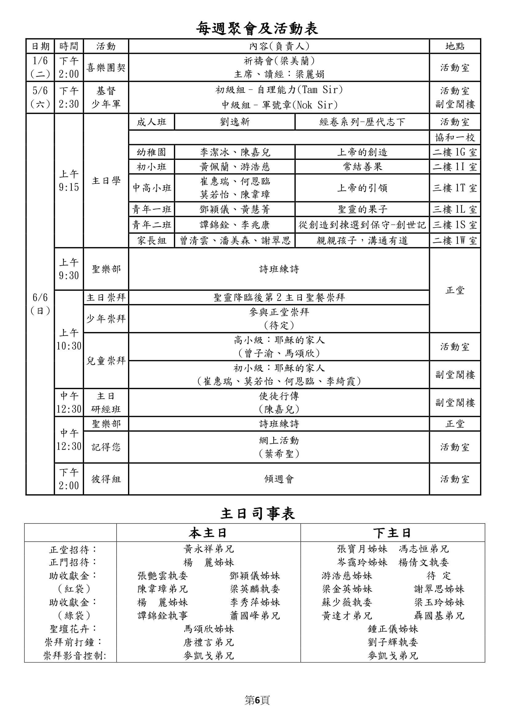事奉輪值表