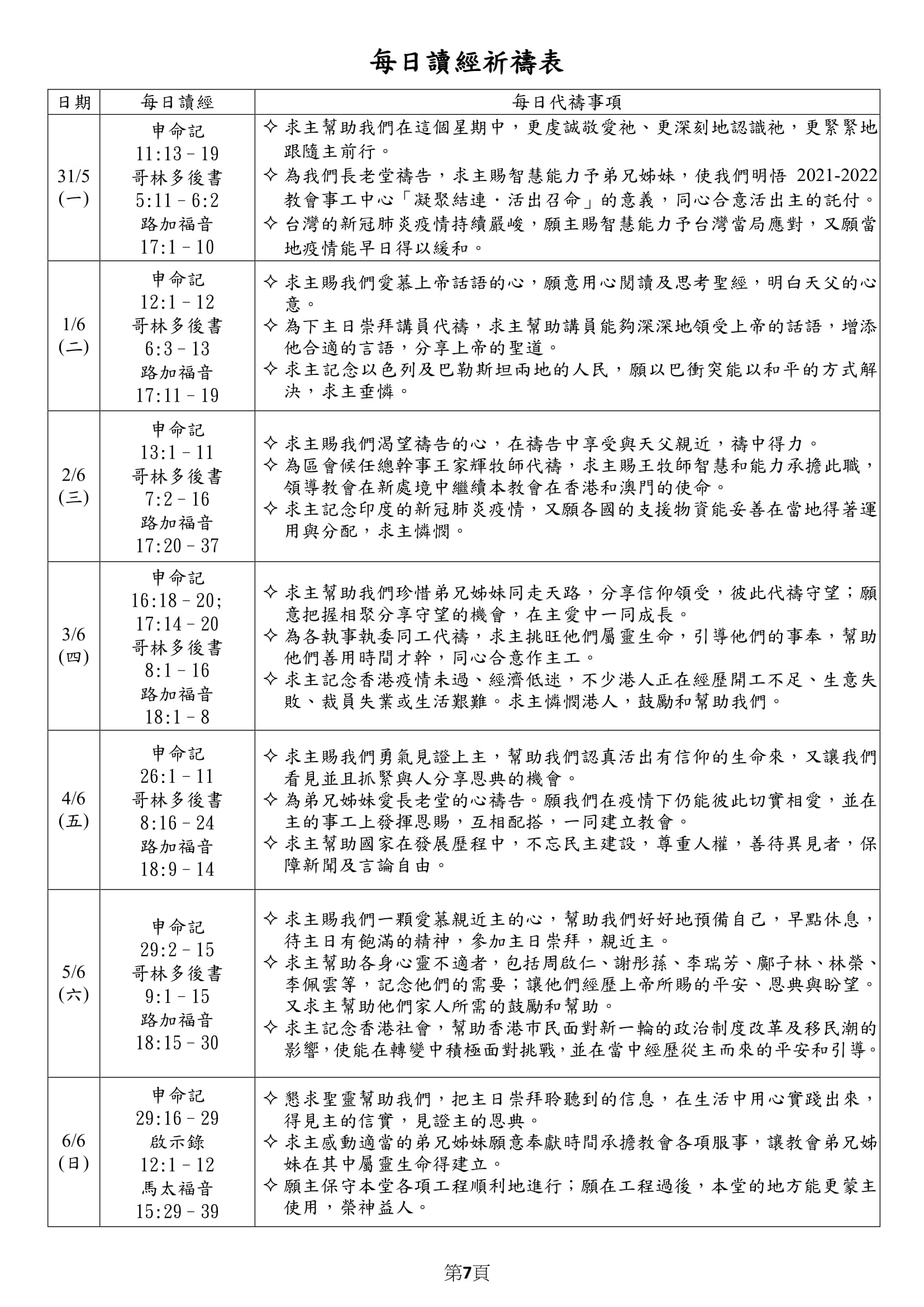 每週代禱